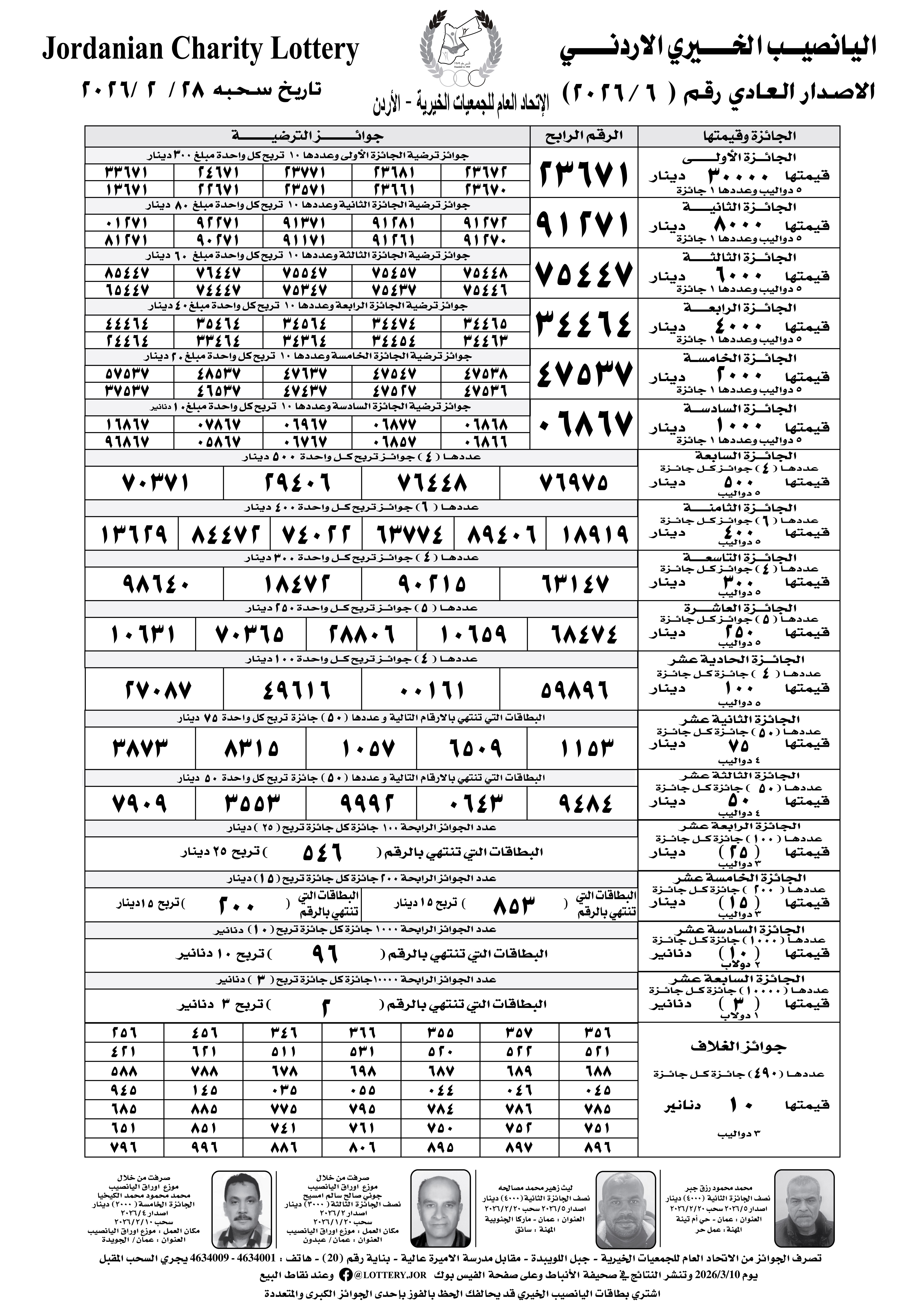 كشف نتائج سحب الاصدار العادي رقم 2026/6 تاريخ 2026/2/28