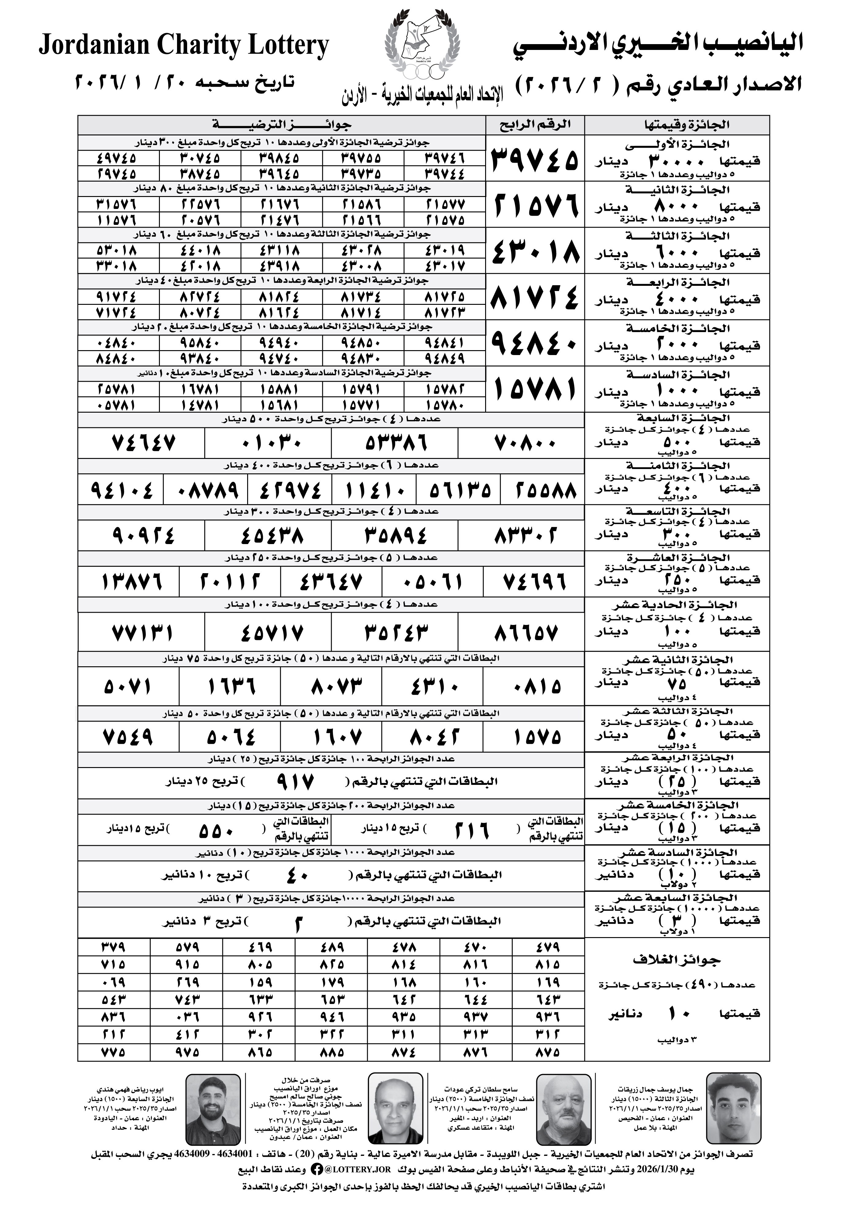 كشف نتائج سحب رقم 2026/2 تاريخ 2026/1/20