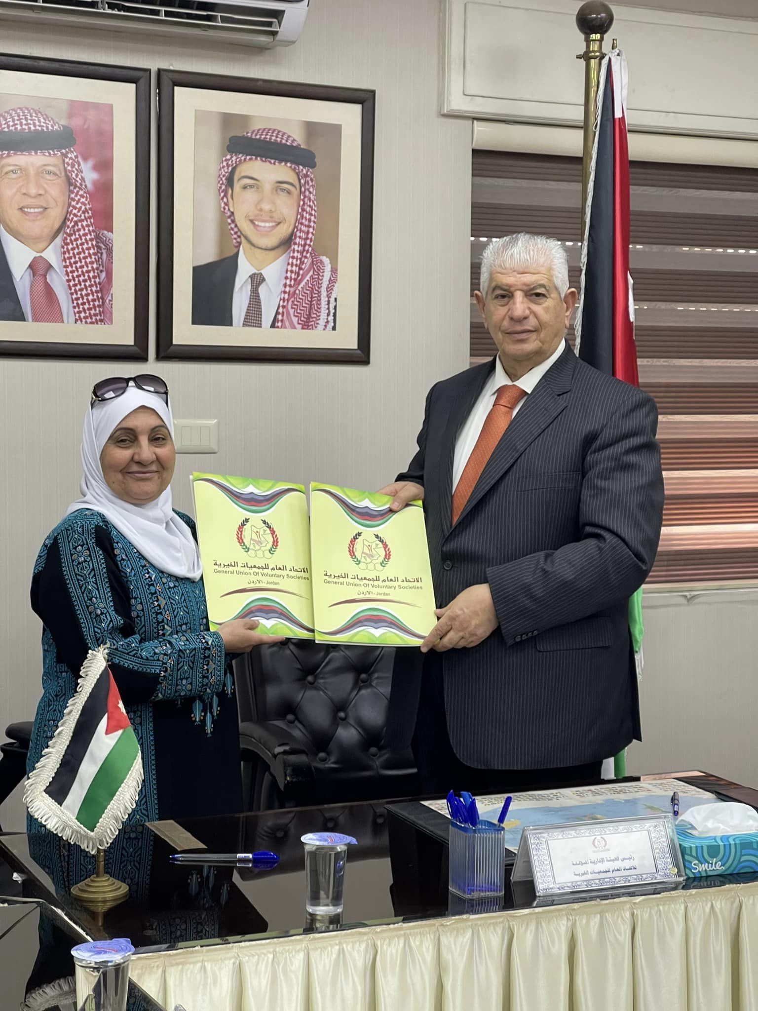 ووقع الاتفاقيه عن الإتحاد رئيسه الدكتور عاطف عضيبات وعن الجمعية رئيستها عفاف النظامي بحضور نائب رئيس الاتحاد عياش كريشان ومدير عام الاتحاد و اليانصيب خليل القبيسي ومديرة المشاريع في الاتحاد شذى قطيشات .