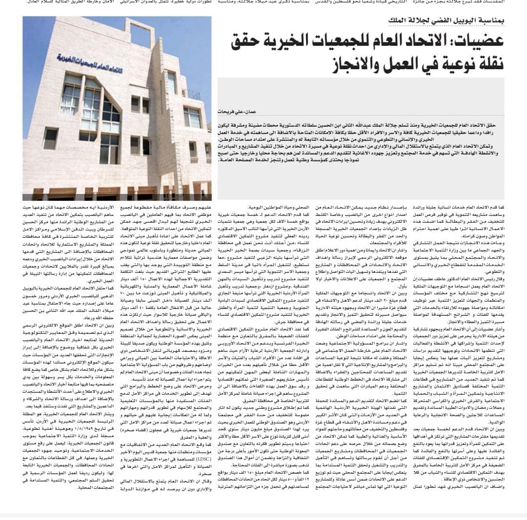 عضيبات : الاتحاد العام للجمعيات الخيرية حقق نقلة نوعية في العمل والانجاز