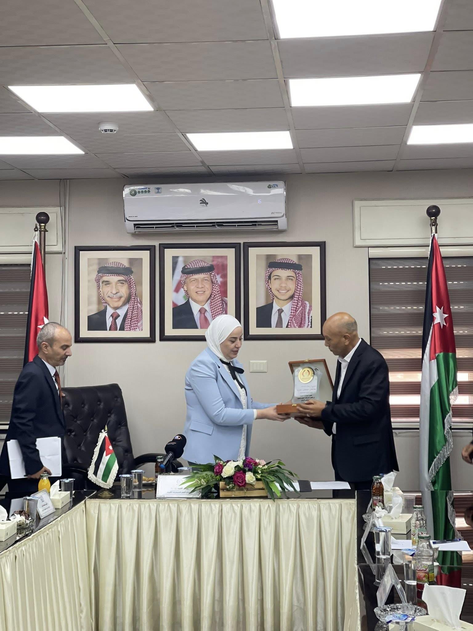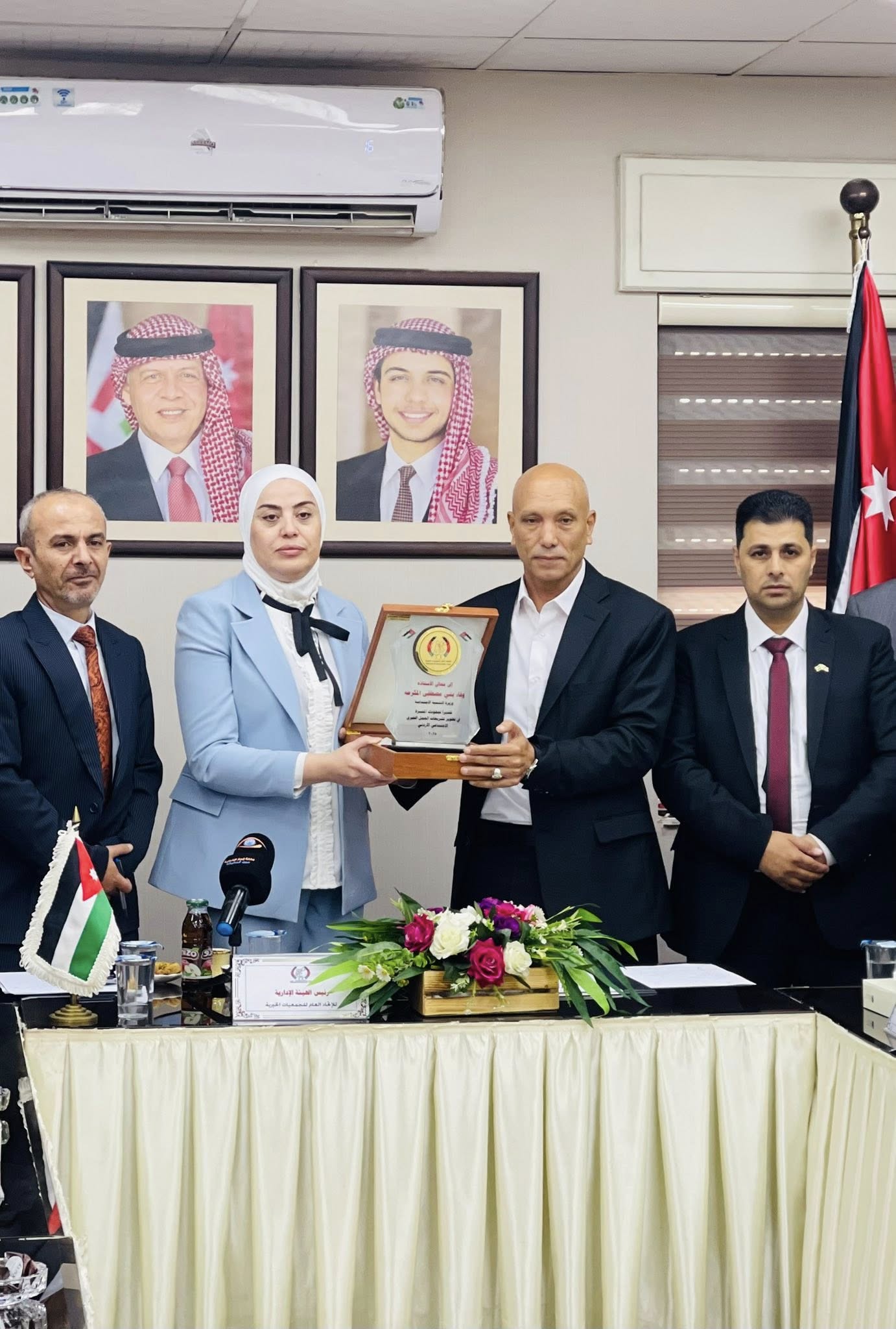 وفي نهاية الزيارة قدم الاتحاد العام درعاً تقديريا ً للوزيره بني مصطفى